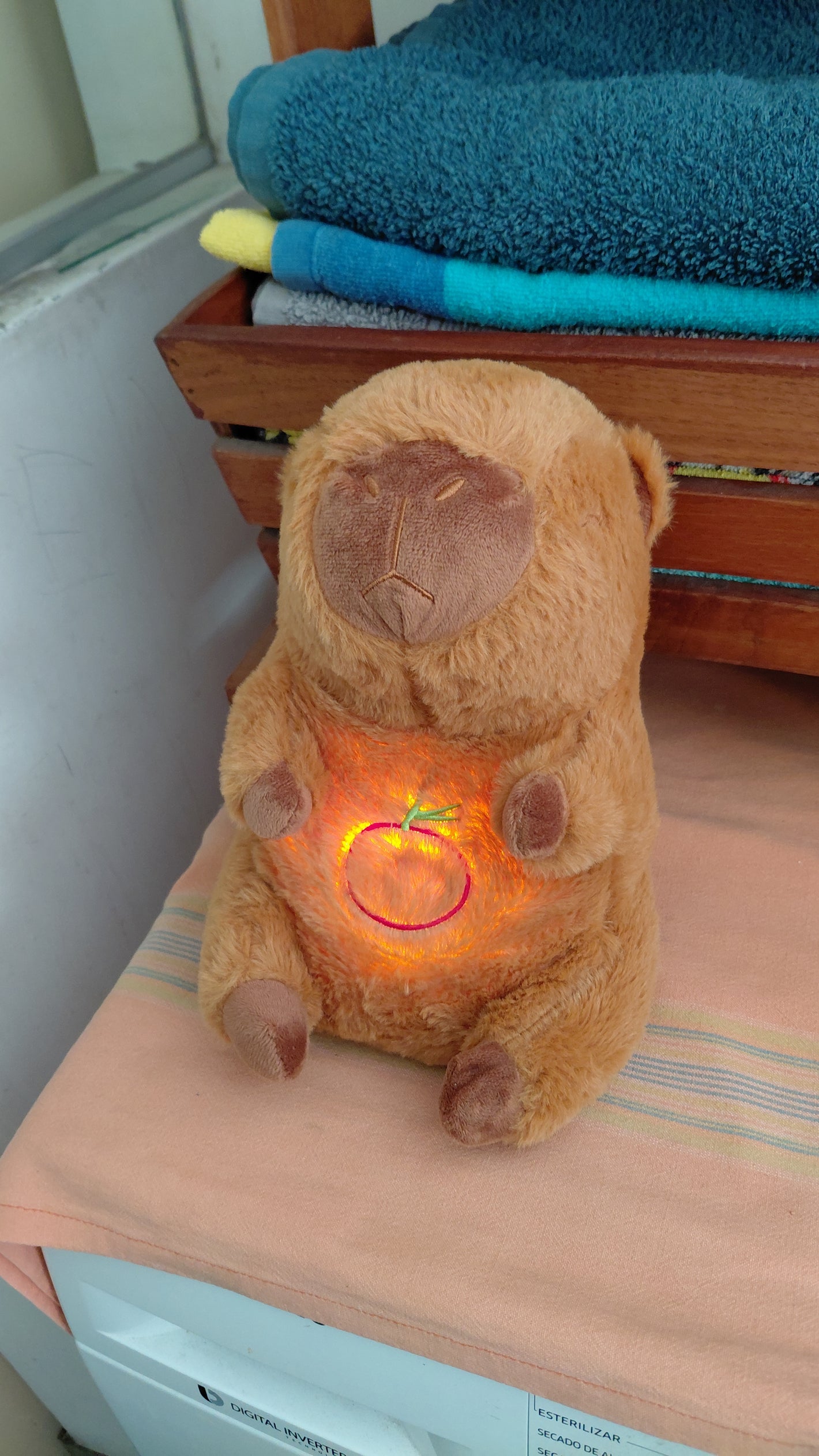 Lo compré para mi novia porque le gustan mucho los capybaras. Cuando vio que respiraba le encantó y ahora lo abraza cuando quiere relajarse.
